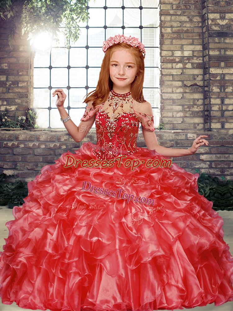 Sleeveless Beading and Ruffles Lace Up Little Girl Pageant Dress