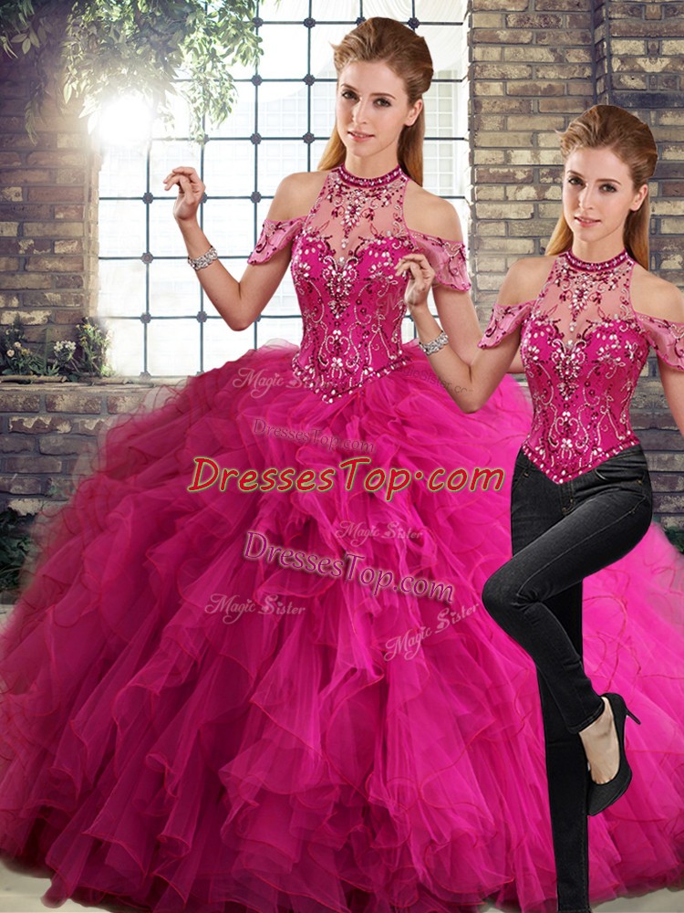 Sleeveless Beading and Ruffles Lace Up Quinceanera Dress