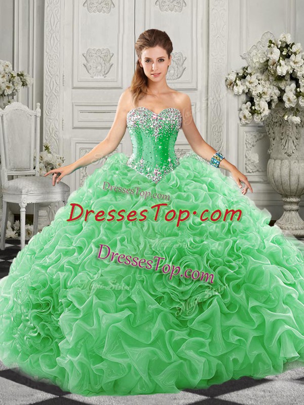 Sleeveless Beading and Ruffles Lace Up Quinceanera Dress with Green Court Train