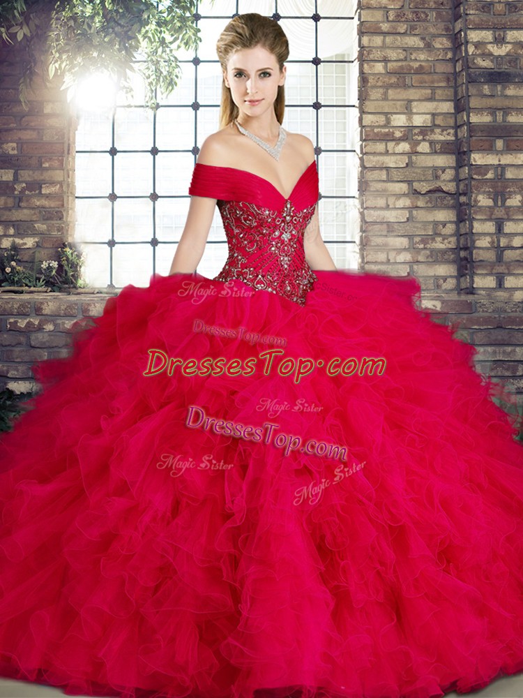 Sleeveless Beading and Ruffles Lace Up Quinceanera Gown