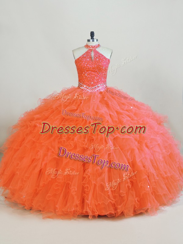 Sleeveless Beading and Ruffles Lace Up Quinceanera Gowns