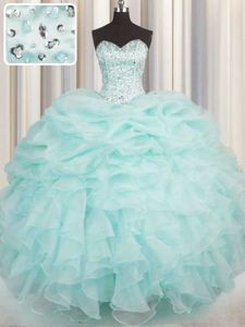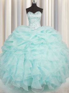 Sleeveless Beading and Ruffles Lace Up Sweet 16 Dress