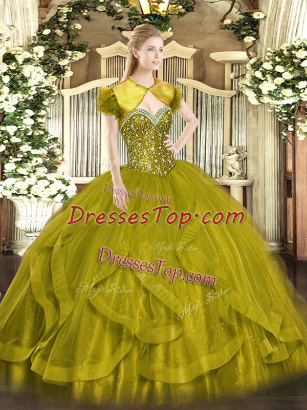 Sleeveless Beading and Ruffles Lace Up Sweet 16 Dress