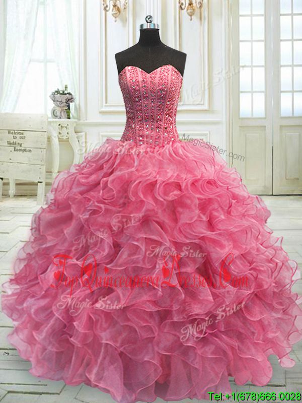 Sleeveless Beading and Ruffles Lace Up Vestidos de Quinceanera