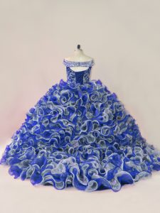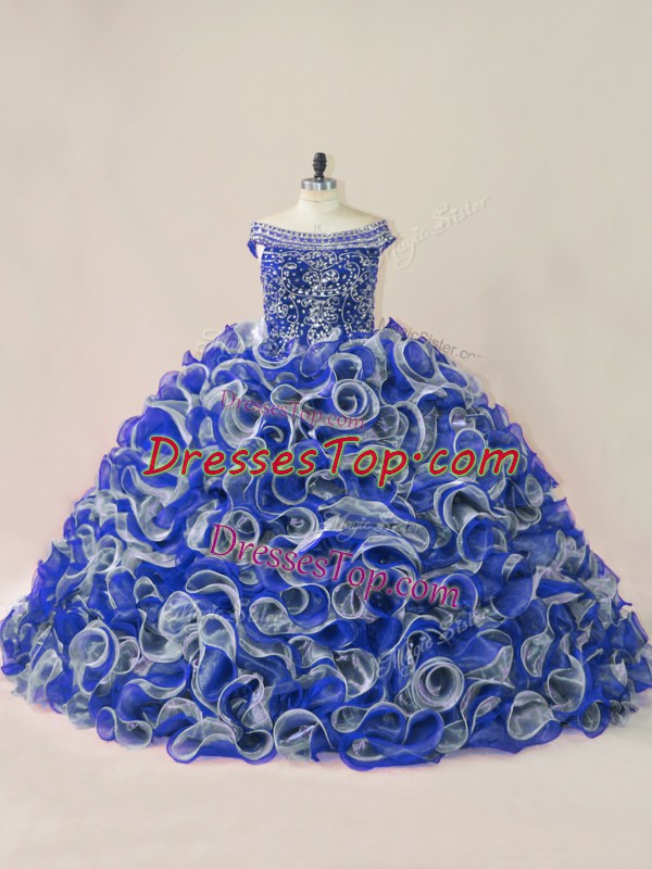 Sleeveless Beading and Ruffles Lace Up Vestidos de Quinceanera with Multi-color Court Train