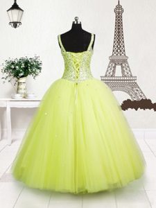Sleeveless Beading and Sequins Lace Up Little Girl Pageant Gowns