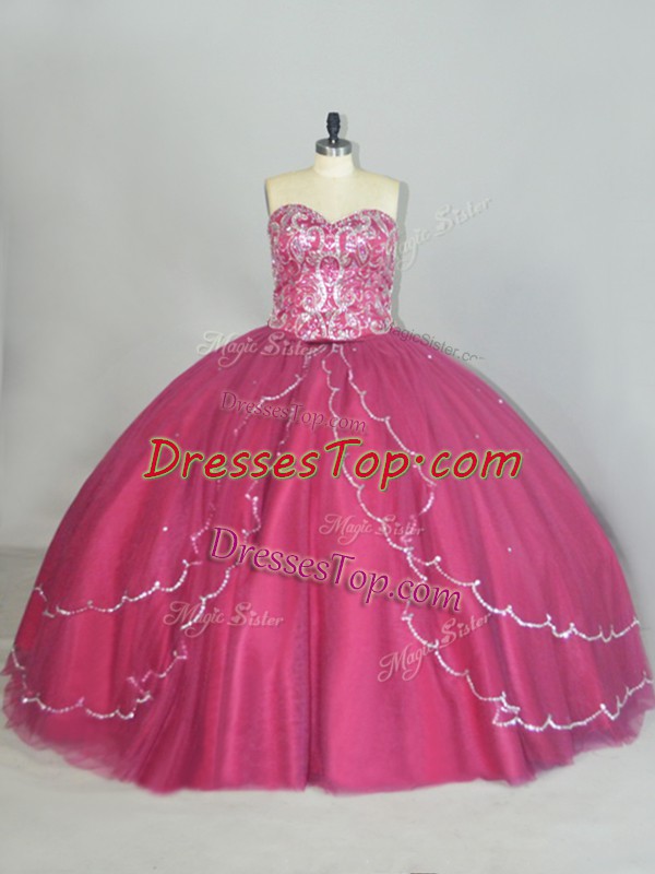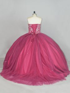 Sleeveless Beading and Sequins Lace Up Sweet 16 Quinceanera Dress with Red Brush Train