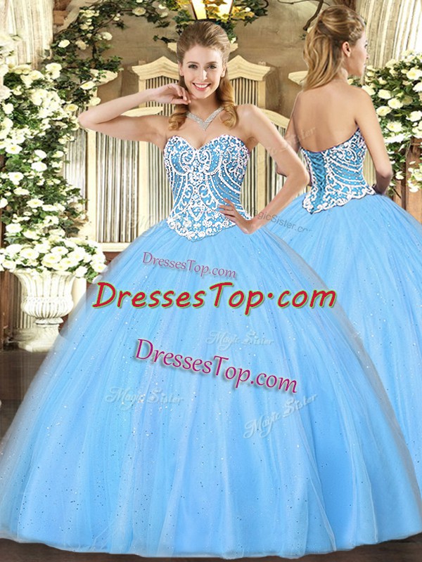 Sleeveless Beading Lace Up 15th Birthday Dress