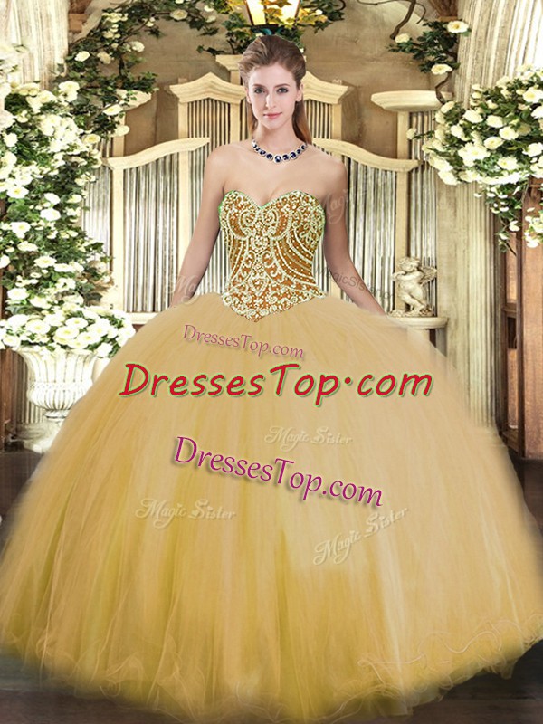 Sleeveless Beading Lace Up Ball Gown Prom Dress