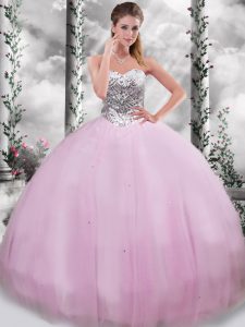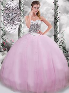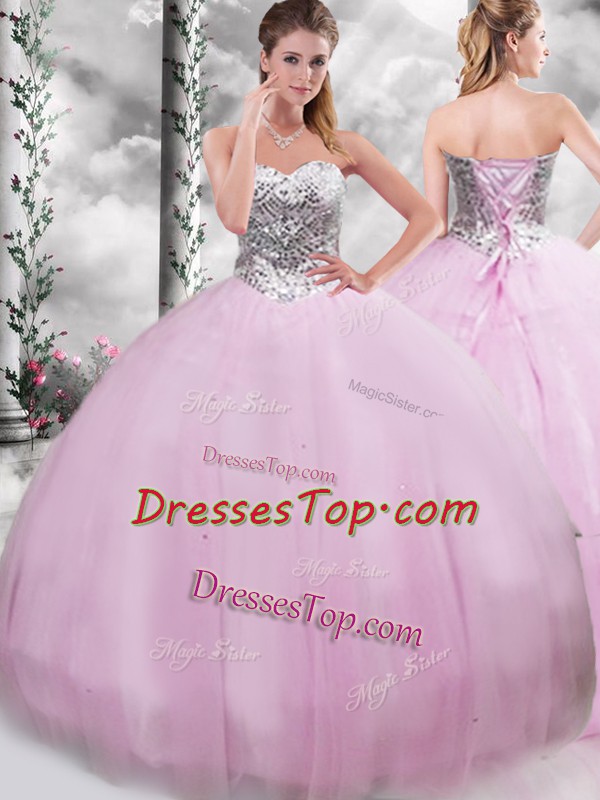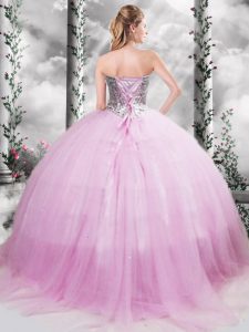 Sleeveless Beading Lace Up Quinceanera Dress with Lilac Brush Train