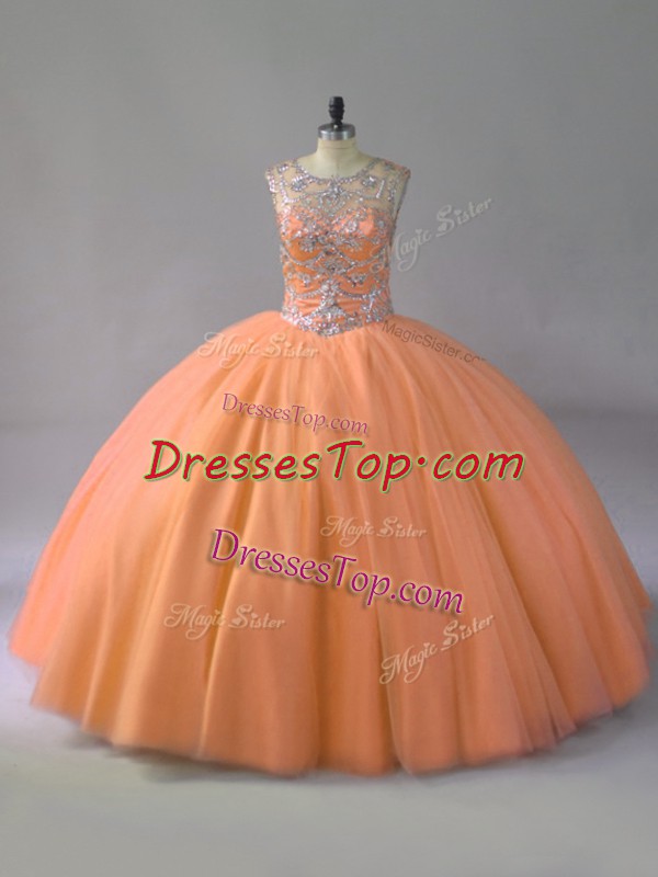 Sleeveless Beading Lace Up Quinceanera Gowns