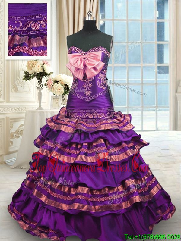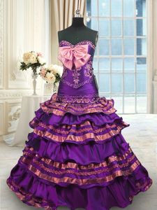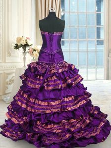 Sleeveless Brush Train Appliques and Ruffled Layers and Bowknot Lace Up Ball Gown Prom Dress