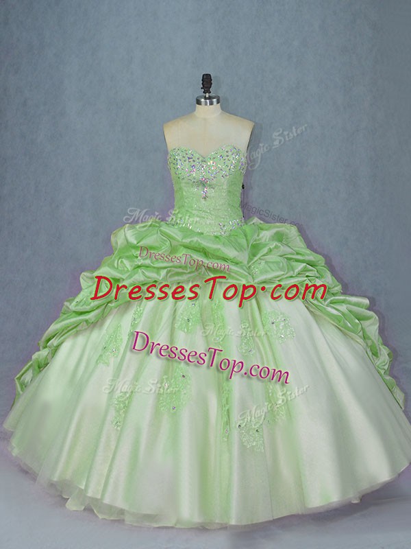Sleeveless Brush Train Beading and Appliques and Pick Ups Quinceanera Dresses