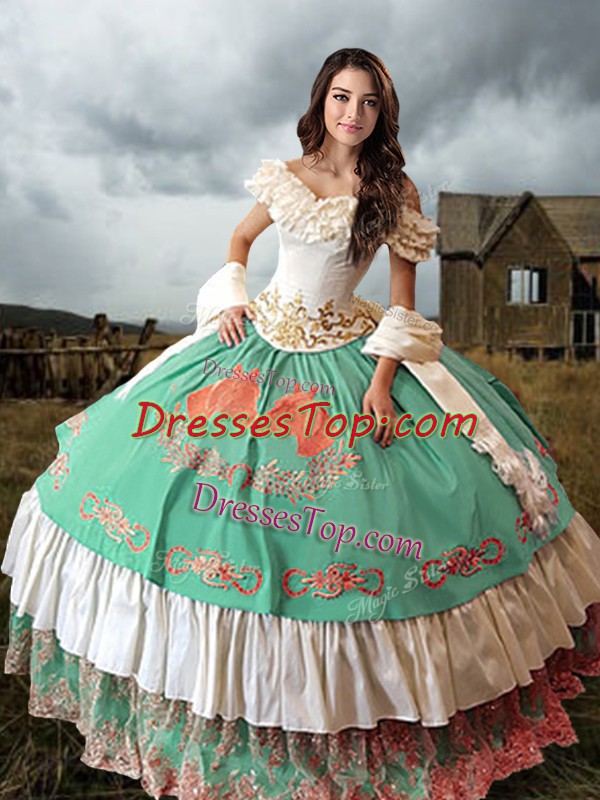 Sleeveless Brush Train Embroidery and Ruffled Layers Lace Up Quinceanera Gown