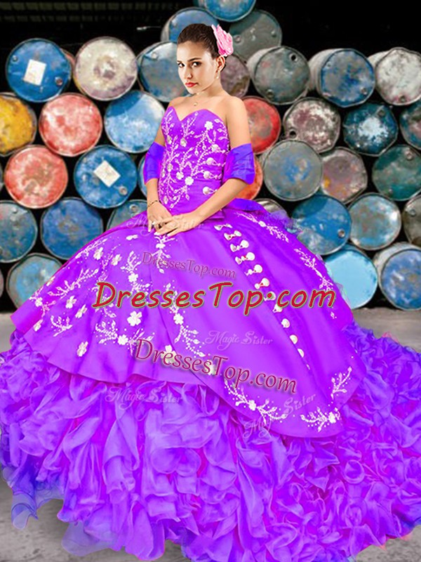 Sleeveless Brush Train Embroidery and Ruffles Lace Up Vestidos de Quinceanera