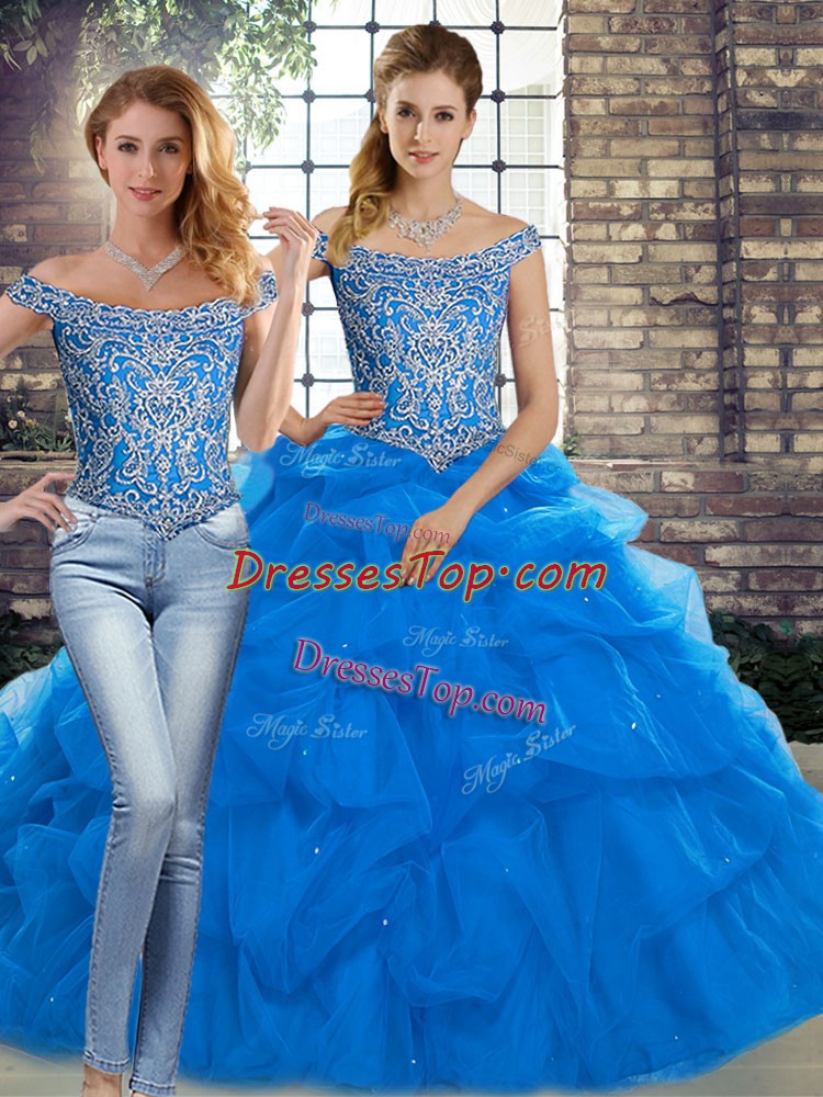 Sleeveless Brush Train Lace Up Beading and Pick Ups 15th Birthday Dress