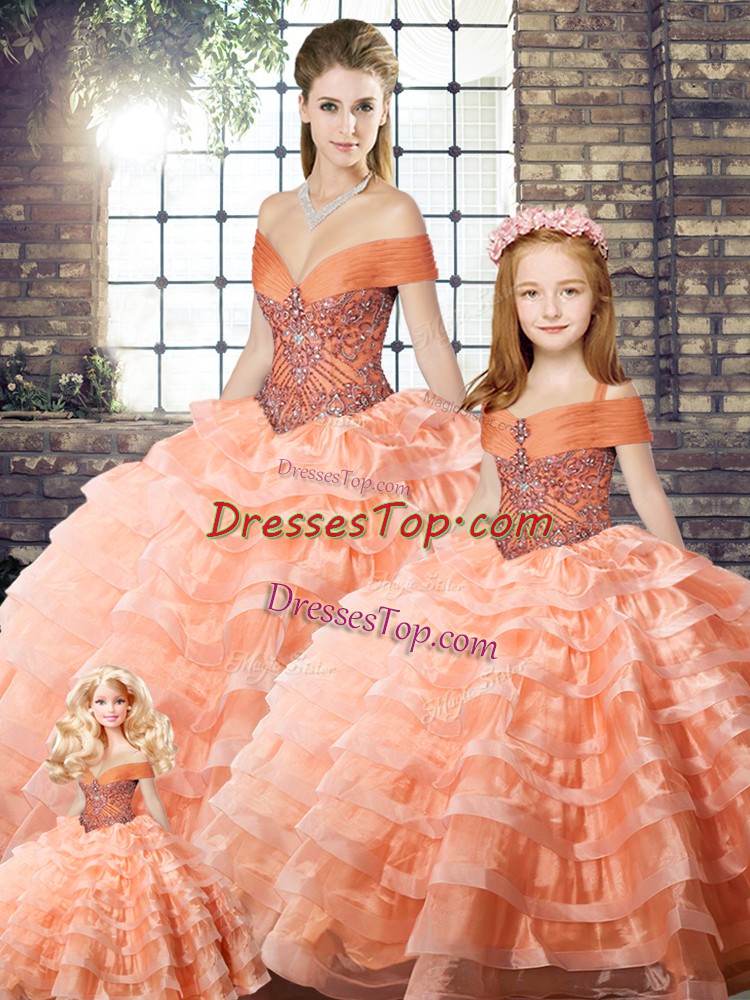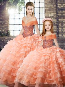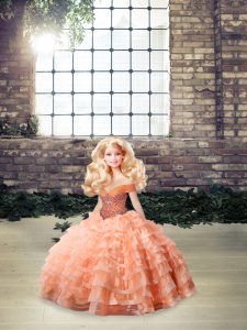Sleeveless Brush Train Lace Up Beading and Ruffled Layers Ball Gown Prom Dress