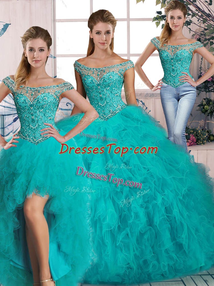 Sleeveless Brush Train Lace Up Beading and Ruffles Sweet 16 Dresses