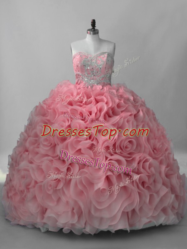 Sleeveless Brush Train Lace Up Beading Ball Gown Prom Dress