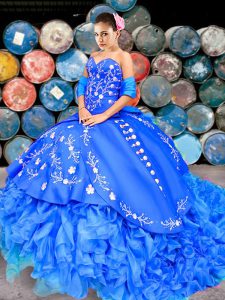 Sleeveless Brush Train Lace Up Embroidery and Ruffles Quinceanera Dress