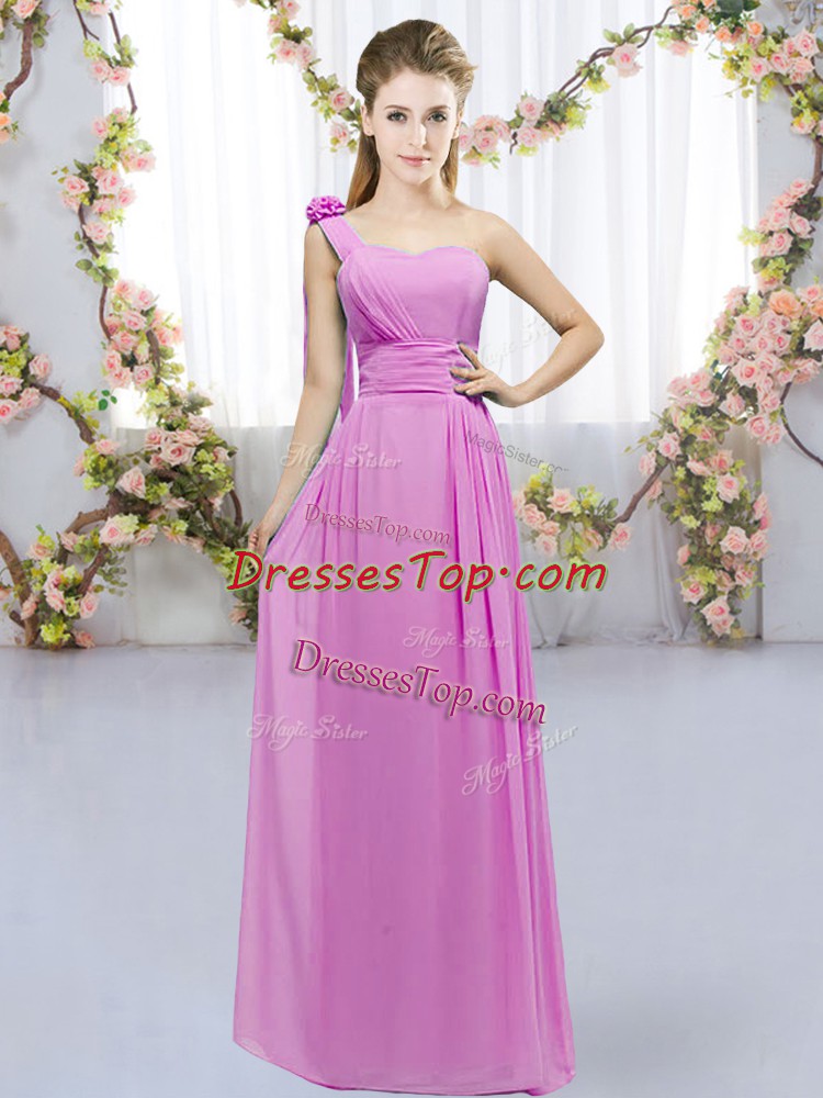 Sleeveless Chiffon Floor Length Lace Up Quinceanera Court of Honor Dress in Lilac with Hand Made Flower