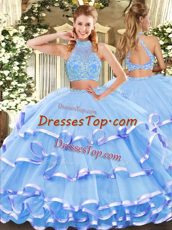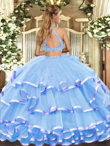 Sleeveless Criss Cross Floor Length Beading and Ruffled Layers Quince Ball Gowns