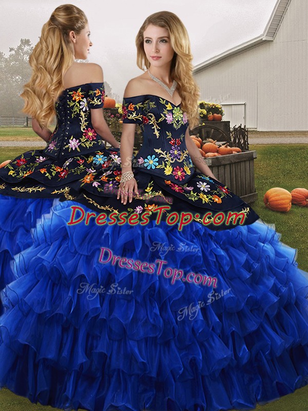 Sleeveless Embroidery and Ruffled Layers Lace Up 15th Birthday Dress