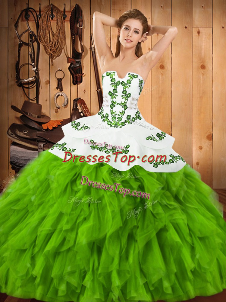 Sleeveless Embroidery and Ruffles Floor Length Sweet 16 Quinceanera Dress