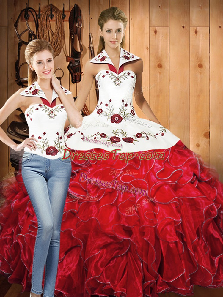 Sleeveless Embroidery and Ruffles Lace Up 15th Birthday Dress