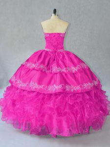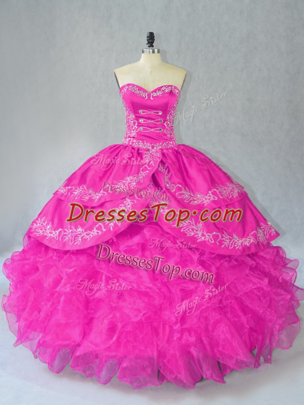 Sleeveless Embroidery and Ruffles Lace Up Ball Gown Prom Dress