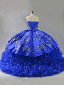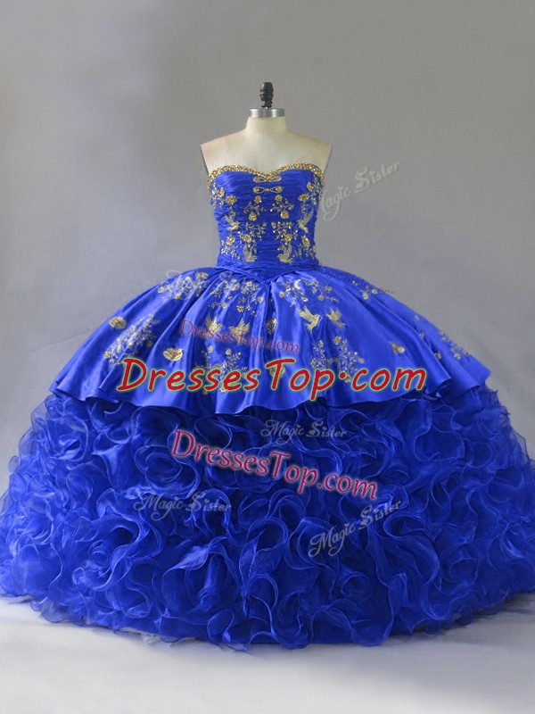 Sleeveless Embroidery and Ruffles Lace Up Ball Gown Prom Dress