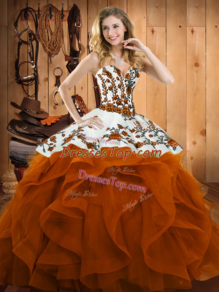Sleeveless Embroidery and Ruffles Lace Up Quinceanera Dress