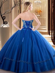 Sleeveless Embroidery Lace Up Ball Gown Prom Dress