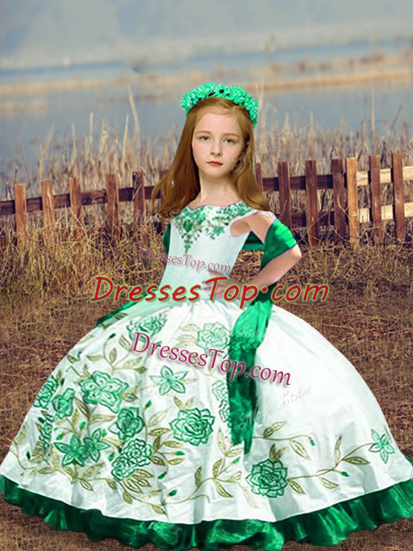 Sleeveless Embroidery Lace Up Little Girls Pageant Dress Wholesale