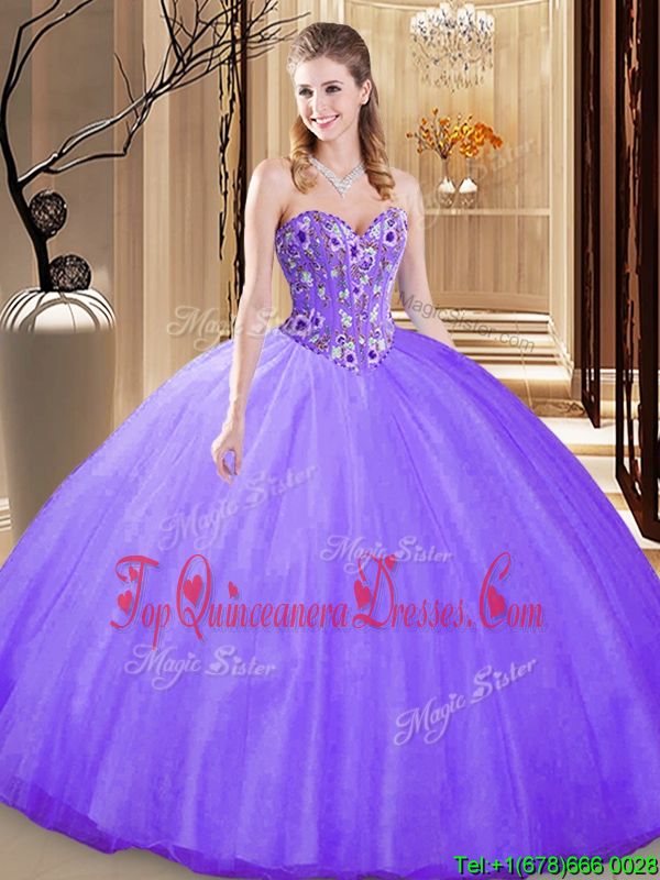 Sleeveless Embroidery Lace Up Sweet 16 Dress