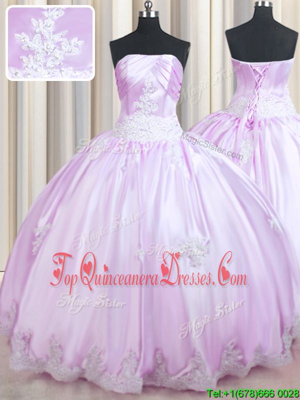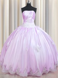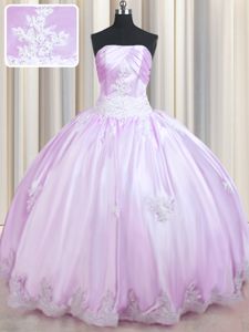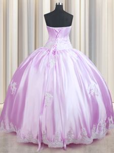 Sleeveless Floor Length Beading and Appliques Lace Up Quinceanera Gown with Lilac