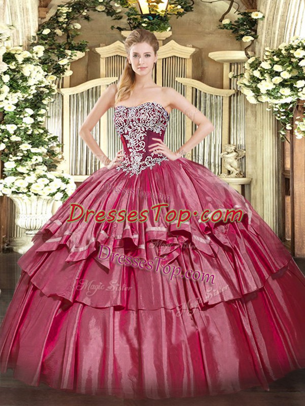 Sleeveless Floor Length Beading and Ruffled Layers Lace Up Sweet 16 Dresses with Hot Pink