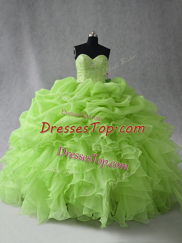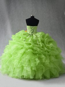 Sleeveless Floor Length Beading and Ruffles and Pick Ups Lace Up Quinceanera Dresses with