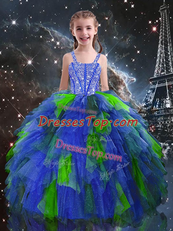 Sleeveless Floor Length Beading and Ruffles Lace Up Pageant Dress Wholesale with Blue