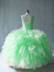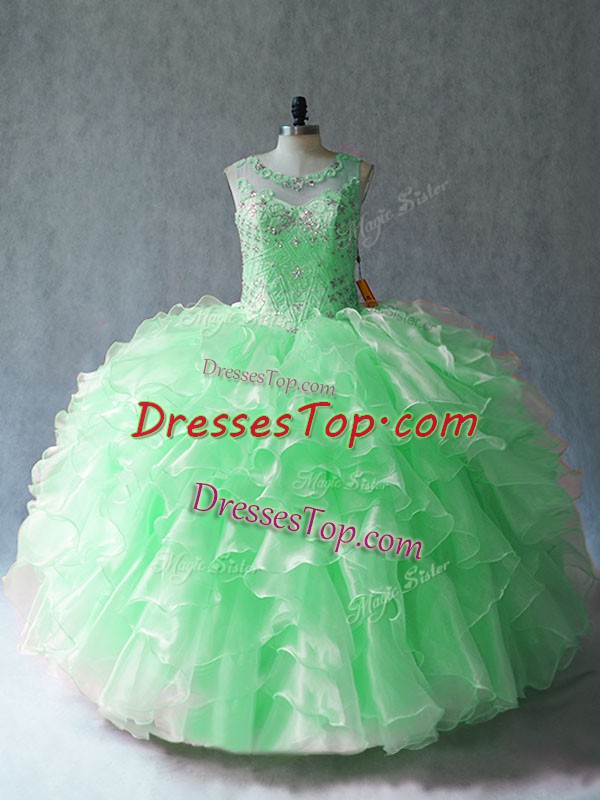 Sleeveless Floor Length Beading and Ruffles Lace Up Quince Ball Gowns with