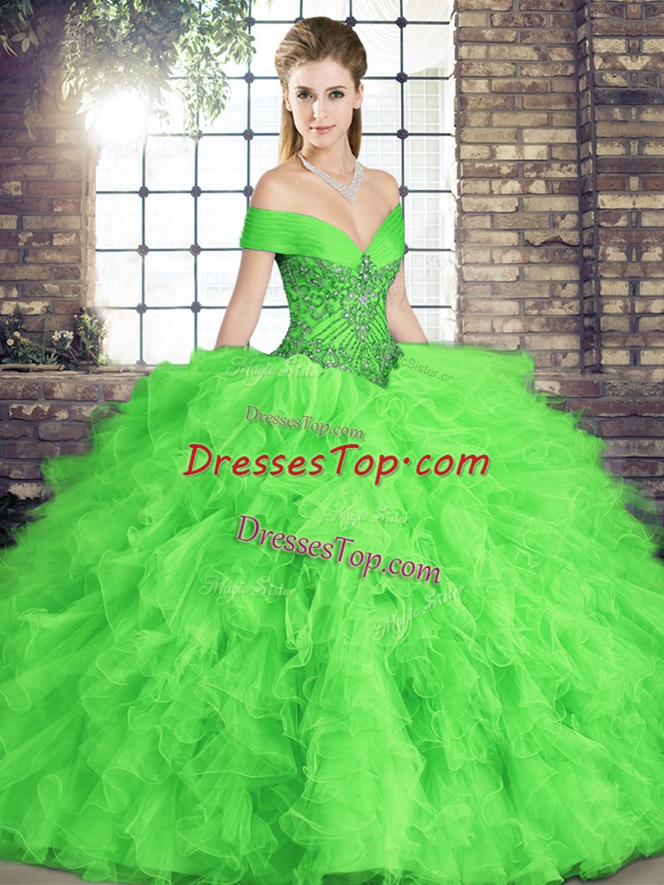 Sleeveless Floor Length Beading and Ruffles Lace Up Sweet 16 Dresses