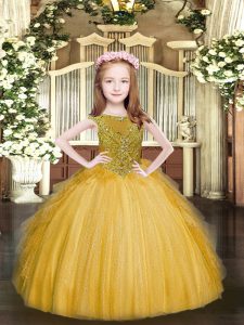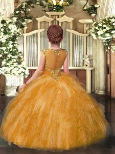 Sleeveless Floor Length Beading and Ruffles Zipper Pageant Gowns with Gold