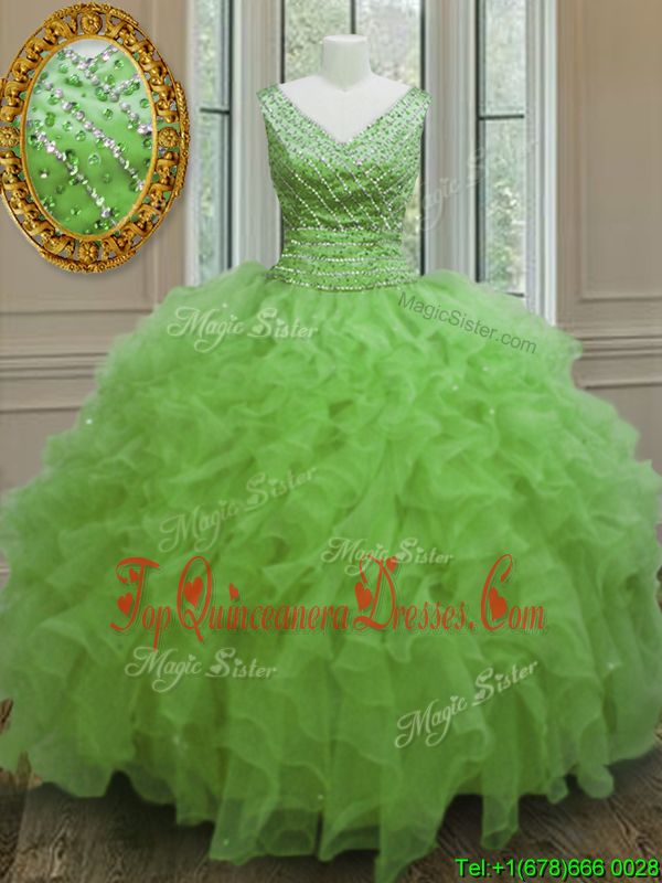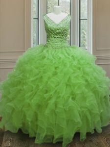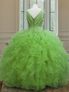 Sleeveless Floor Length Beading and Ruffles Zipper Quinceanera Dress