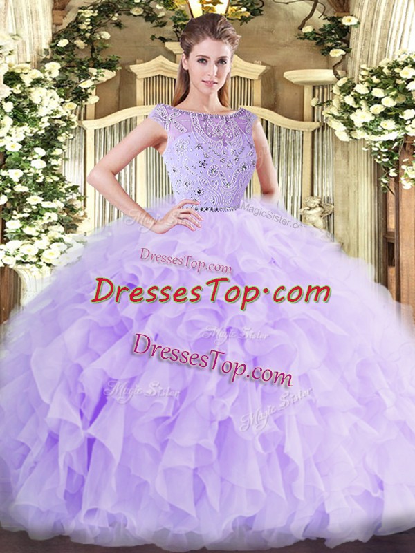 Sleeveless Floor Length Beading and Ruffles Zipper Quinceanera Dress with Lavender