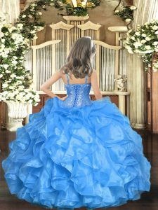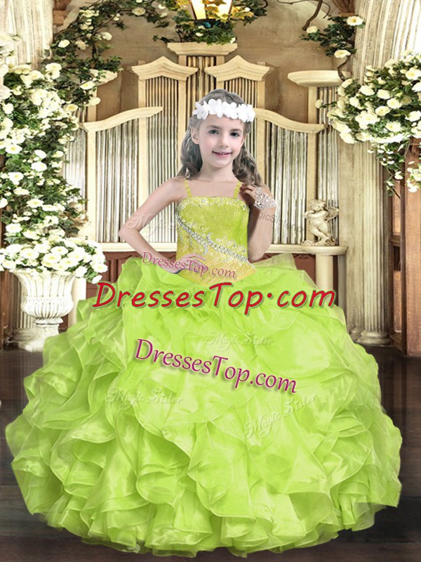 Sleeveless Floor Length Beading Lace Up Little Girls Pageant Gowns with Yellow Green