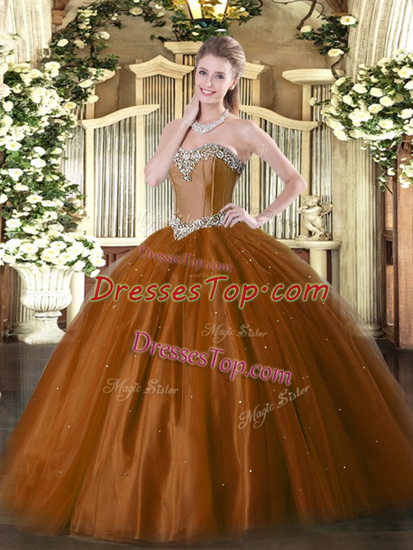 Sleeveless Floor Length Beading Lace Up Quinceanera Dresses with Rust Red