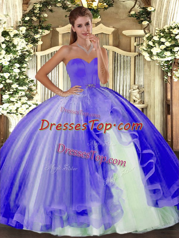 Sleeveless Floor Length Beading Lace Up Quinceanera Gown with Lavender
