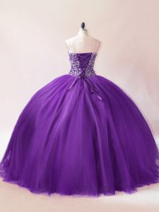 Sleeveless Floor Length Beading Lace Up Sweet 16 Dress with Purple