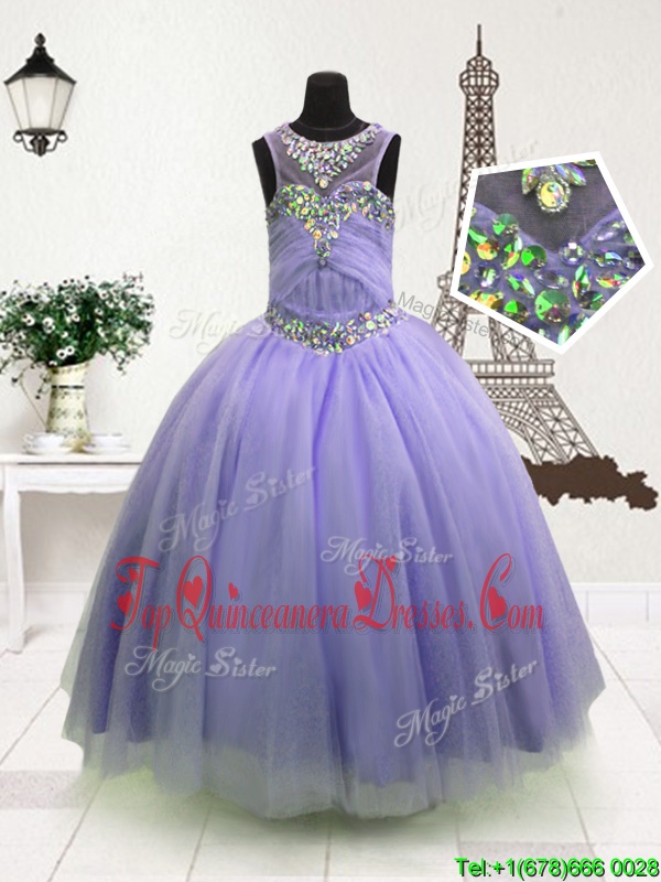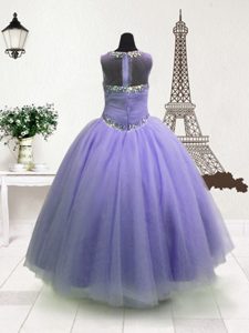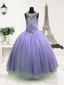 Sleeveless Floor Length Beading Zipper Kids Formal Wear with Lavender