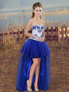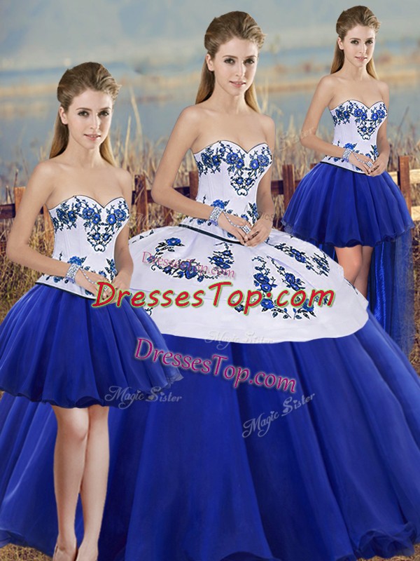 Sleeveless Floor Length Embroidery and Bowknot Lace Up Quinceanera Dress with Royal Blue
